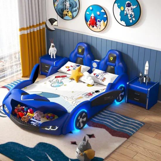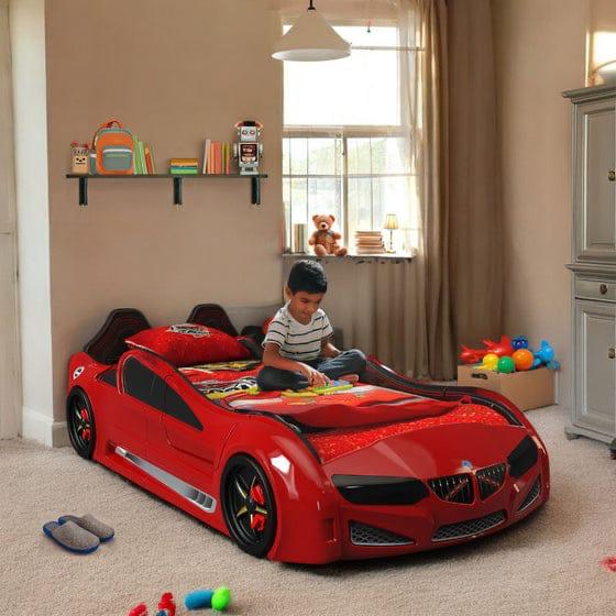 Fuel your child’s imagination with the ultimate sleeping machine. Modeled after world-class grand touring cars, the GT-E RCR features a high-gloss aerodynamic finish, realistic alloy-style wheels, and integrated LED underglow lighting for a true night-race experience. The padded “racing seat” headboard provides extra comfort for bedtime reading, while the sturdy frame ensures a safe, durable ride into dreamland.